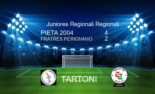 Media PIETA 2004 4-2 FRATRES PERIGNANO 18/04 - 15.00.00 - Risultato Finale Ris.verificato Ins.Foto Ins.Commento Arbitro: Tafa Sow sez.Pistoia 14' Vannuzzi 30' Vannuzzi 57' Palaj 89' Giuliani 51' Ben Toraa 68' Zampardi Ins.Form. Ins.MVP. Ins.Form. Ins.MVP.