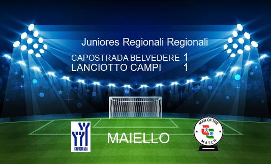 Media CAPOSTRADA BELVEDERE 1-1 LANCIOTTO CAMPI 25/04 - 16.00.00 - Risultato Finale Ris.verificato Ins.Foto Ins.Commento Arbitro: Fabio Bocca sez.Lucca Maiello Panerai Ins.Form. Ins.MVP. Ins.Form. Ins.MVP.