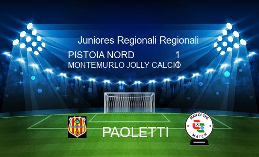 Media PISTOIA NORD 1-1 MONTEMURLO JOLLY CALCIO 25/04 - 16.00.00 - Risultato Finale Ris.verificato Ins.Foto Ins.Commento Arbitro: Matteo Luddi sez.Firenze Paoletti C. Hoxha Ins.Form. Ins.MVP. Ins.Form. Ins.MVP.
