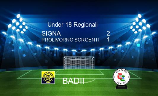 Media SIGNA 2-1 PROLIVORNO SORGENTI 28/02 - 17.30.00 - Risultato Finale Ris.verificato Ins.Foto Ins.Commento Arbitro: Luca Romano sez.Pistoia Badii Badii Paggini Ins.Form. Ins.MVP. Ins.Form. Ins.MVP.