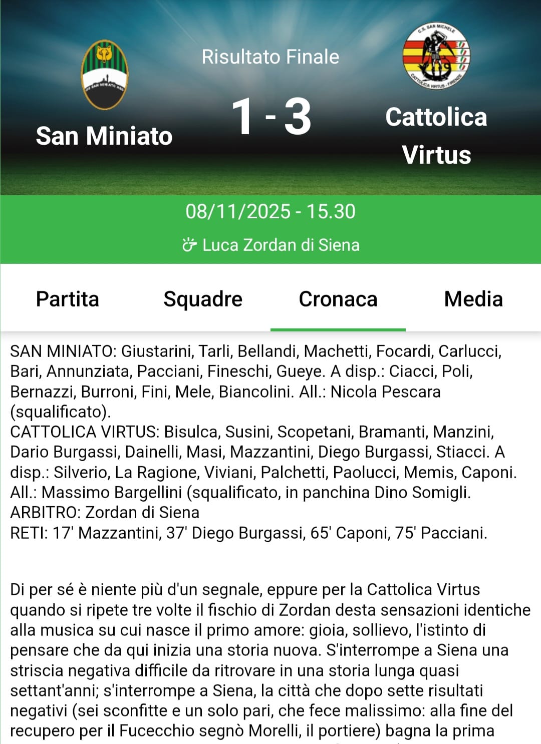 Tante nuove cronache delle partite disponibili sulla nostra app!