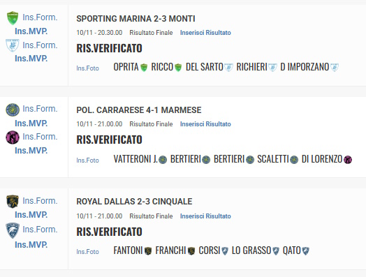 Stessa sequenza delle marcature anche nella sfida-bis tra il Royal Dallas e Cinquale, doppio vantaggio iniziale dei padroni di casa con Fantoni e Franchi; nel secondo tempo gli ospiti riaprono il match con il penalty di Corsi, pareggiano i conti nel finale con Lo Grasso e riescono a ribaltare il risultato nel recupero con il punto di Qato. Tre punti che permettono al team di mister Fubiani di conservare la terza posizione di classifica a soli tre punti dal duo di testa.