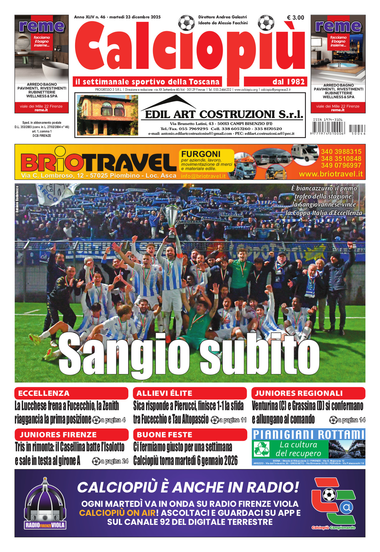 Calciopiu in edicola, il numero di martedi 23 dicembre