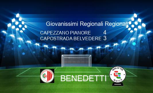 Media CAPEZZANO PIANORE 4-3 CAPOSTRADA BELVEDERE 09/11 - 10.30.00 - Risultato Finale Ris.verificato Ins.Foto Ins.Commento Arbitro: Ludovico Giannotti sez.Viareggio Tomei Benedetti Vairo Benedetti Ponziani Ponziani Bekjiri Ins.Form. Ins.MVP. Ins.Form. Ins.MVP.