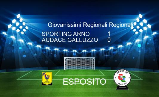 Media SPORTING ARNO 1-0 AUDACE GALLUZZO 25/01 - 11.00.00 - Risultato Finale Ris.verificato Ins.Foto Ins.Commento Arbitro: Francesco Ballarino sez.Firenze Sidbe Ins.Form. Ins.MVP. Ins.Form. Ins.MVP.