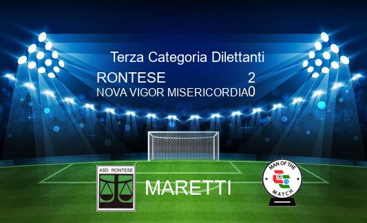 Media RONTESE 2-0 NOVA VIGOR MISERICORDIA 18/04 - 15.00.00 - Risultato Finale Ris.verificato Ins.Foto Ins.Commento 78' Marucelli 86' Maretti Ins.Form. Ins.MVP. Ins.Form. Ins.MVP.