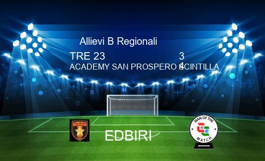 Rocambolesca partita che premia il San Prospero, che vince sul campo del Tre e 23 per 4-3. Per i locali ancora una delusione, con l'ennesimo calcio di rigore fallito, stavolta proprio sul gong, che non rende merito alla prova dei ragazzi di casa, sconfitti ancora una volta. Si inizia senza troppi timori riverenziali e il risultato si sblocca subito grazie al guizzo di Ruberti. La formazione di casa si scuote e ribalta il risultato con l'uno-due firmato da Edbiri. Prima del riposo però la formazione di casa molla mentalmente e si fa raggiungere e poi superare dagli avversari per le reti